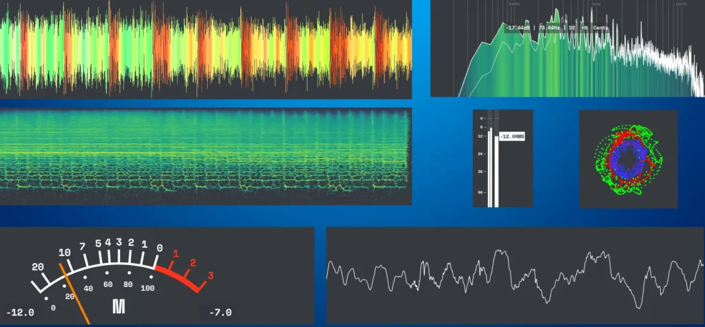 Choose from multiple modules (VU, Spectrum, Spectrogram, Oscilloscope, etc.).