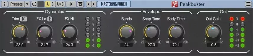 Voxengo Peakbuster v1.8.0 is a multi-band transient enhancer and dynamics processor designed to boost attack phases, smooth resonances, and enhance harmonics while maintaining a natural sound—even on complex mixes or full master buses.